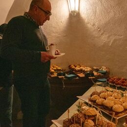 Nach der Führung wurde das Buffet von Essbar Catering eröffnet, das mit einer vielfältigen Auswahl an kulinarischen Köstlichkeiten begeisterte und für das leibliche Wohl der Gäste sorgte.
