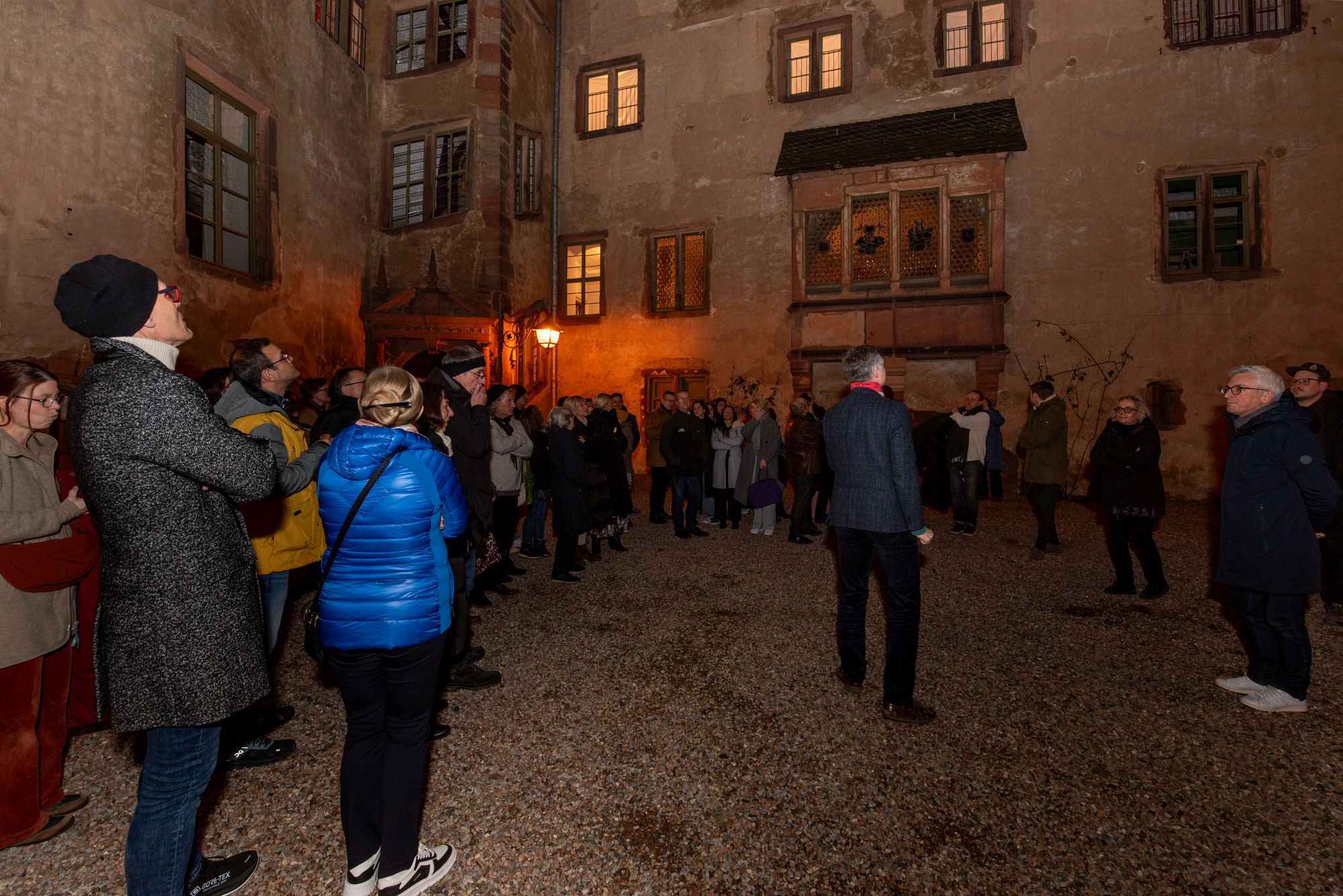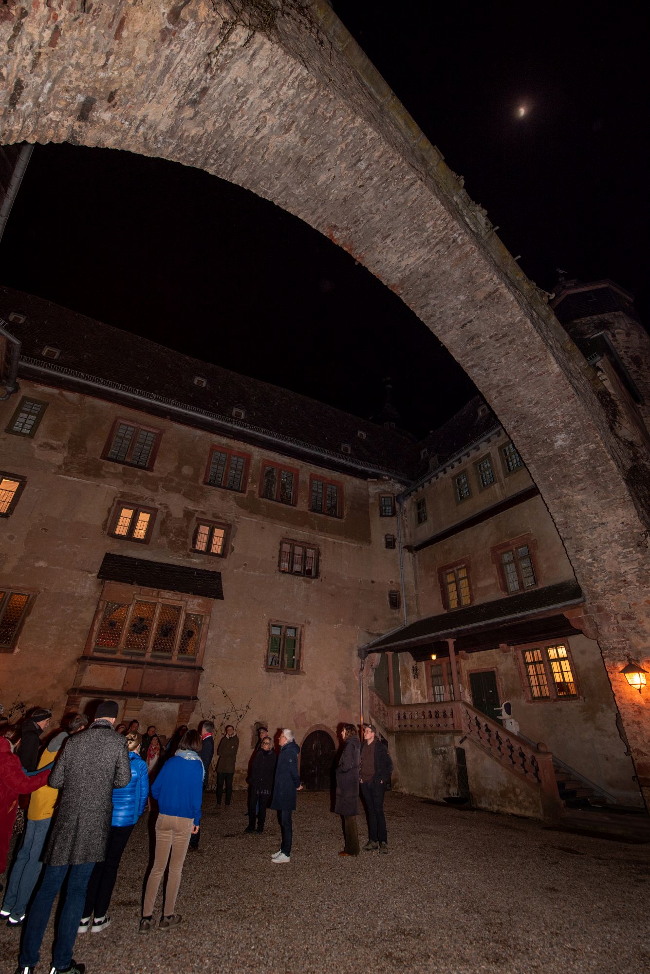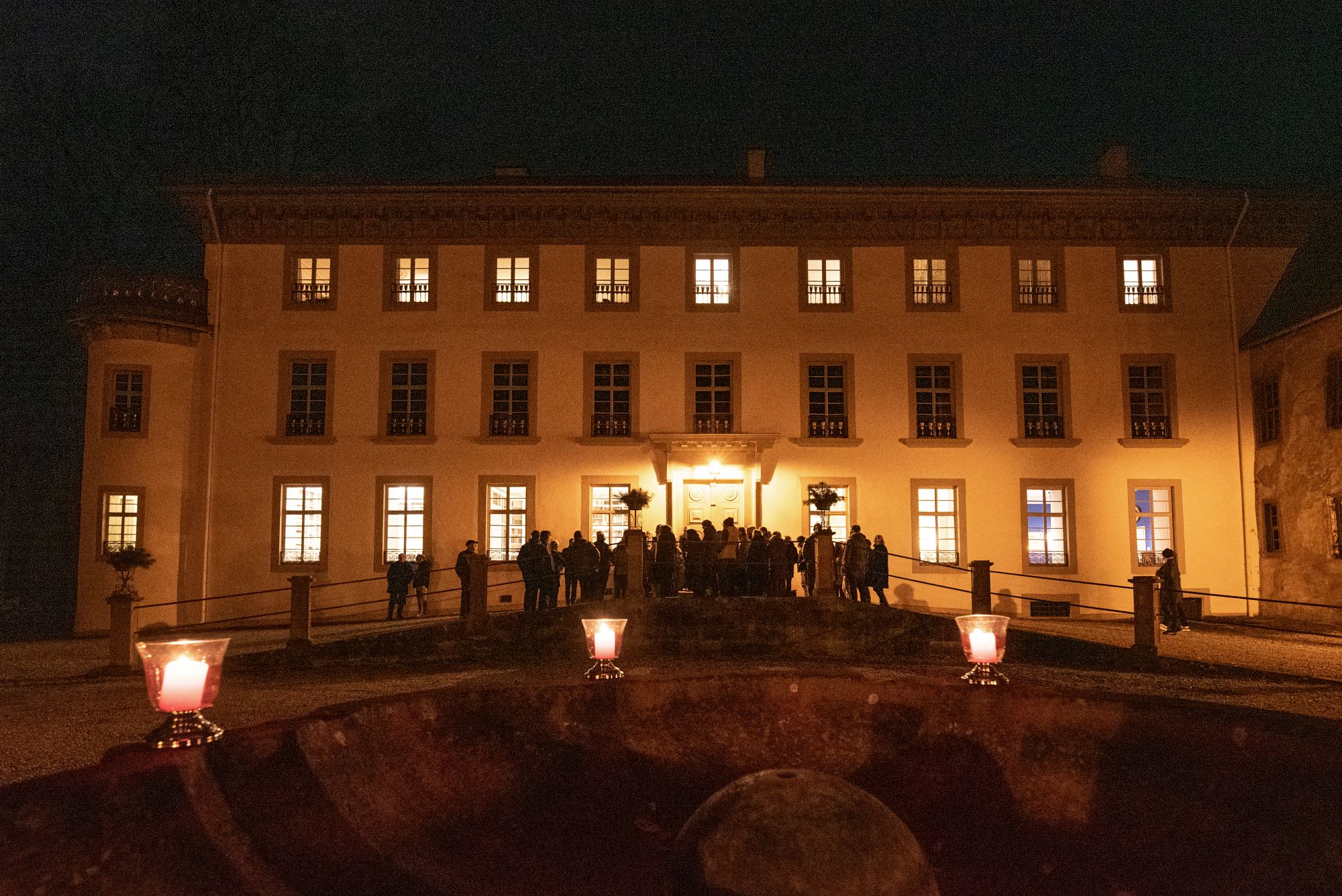 Im Anschluss folgte eine exklusive Schlossführung durch Graf Louis, der mit viel Charme und Wissen spannende Einblicke in die Geschichte und Architektur des historischen Schlosses gewährte. Die Teilnehmer zeigten sich beeindruckt von den prachtvollen Räumlichkeiten und den interessanten Anekdoten aus vergangenen Zeiten.